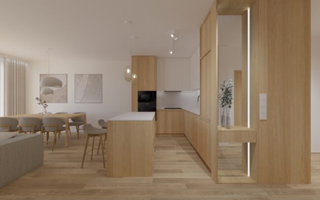 Apartament w beżach i drewnie